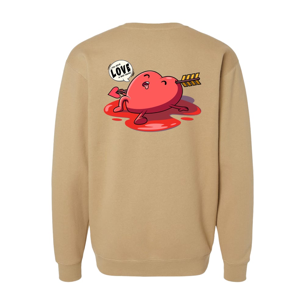 Ticker makes his return for Valentine’s Day 2025 in our “Shot Through the Heart” crewneck sweatshirt! As he was strolling through Rotten Apple Woods listening to his favorite 1980s rock ballads on his boombox, Ticker unknowingly found himself in the crosshairs of Cupid’s bows and bitten by the love bug. This limited Valentine’s Day design will only be available while stock lasts and is screen printed on a heavyweight crewneck sweatshirt. Available in Sandstorm and Heather Grey.